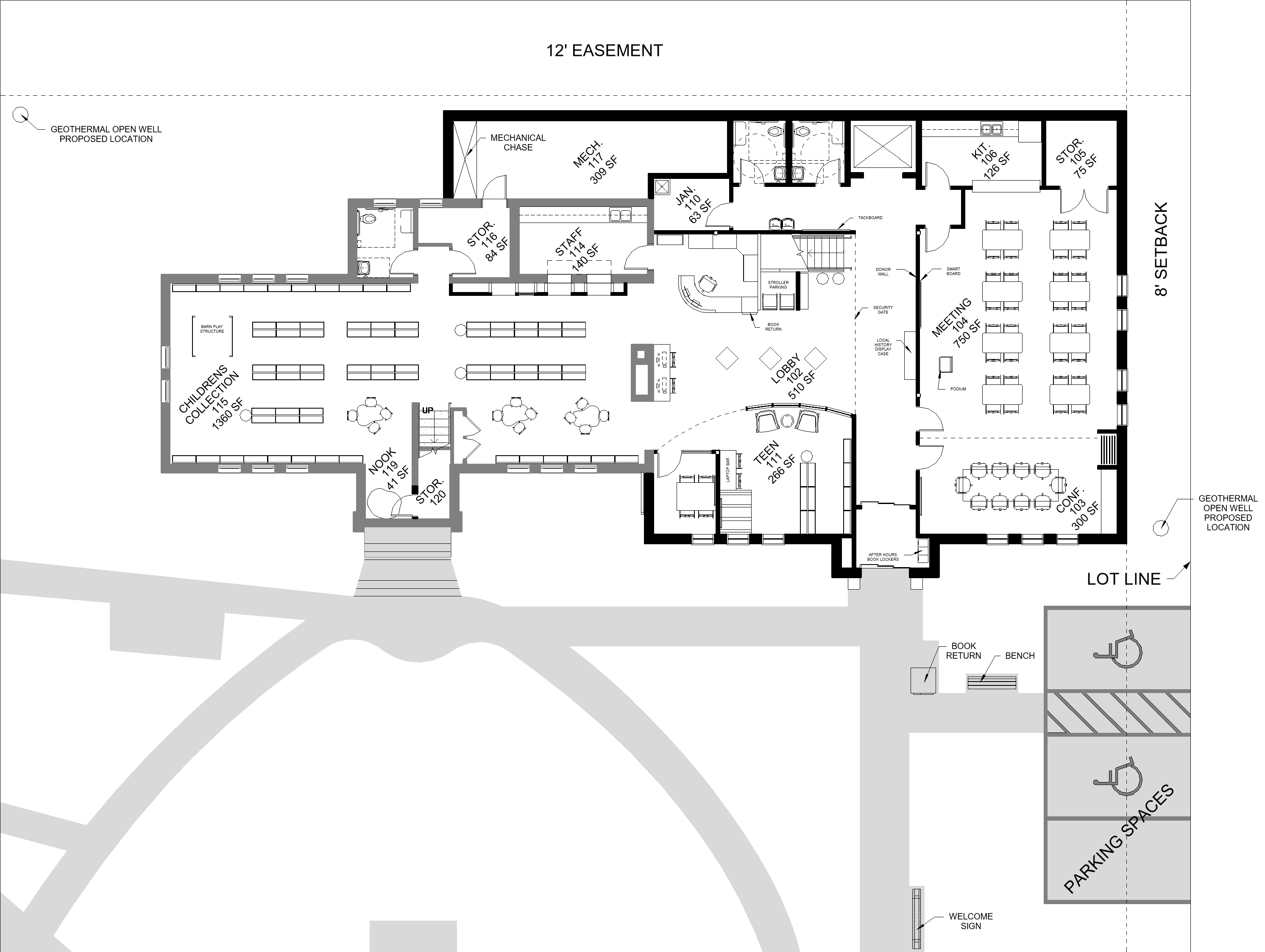 Our current estimates for construction include approximately $300,000 for site prep, extending utility lines, surveying, code review, and civil engineering. We anticipate other engineering costs, architecture costs, building materials, labor, and construction costs to cost an additional $3,800,000. We anticipate approximately $50,000 more in broadband infrastructure, computers, and other technology costs. Looking at similarly, recently built libraries and community centers, we expect furniture costs of approximately $275,000. To reduce ongoing costs, the Library plans to install solar panels and a backup battery to cover our complete energy needs at an upfront cost of approximately $150,000. The Library Board has set a fundraising goal of $530,000 to cover expenses that can not be paid for with the grant.